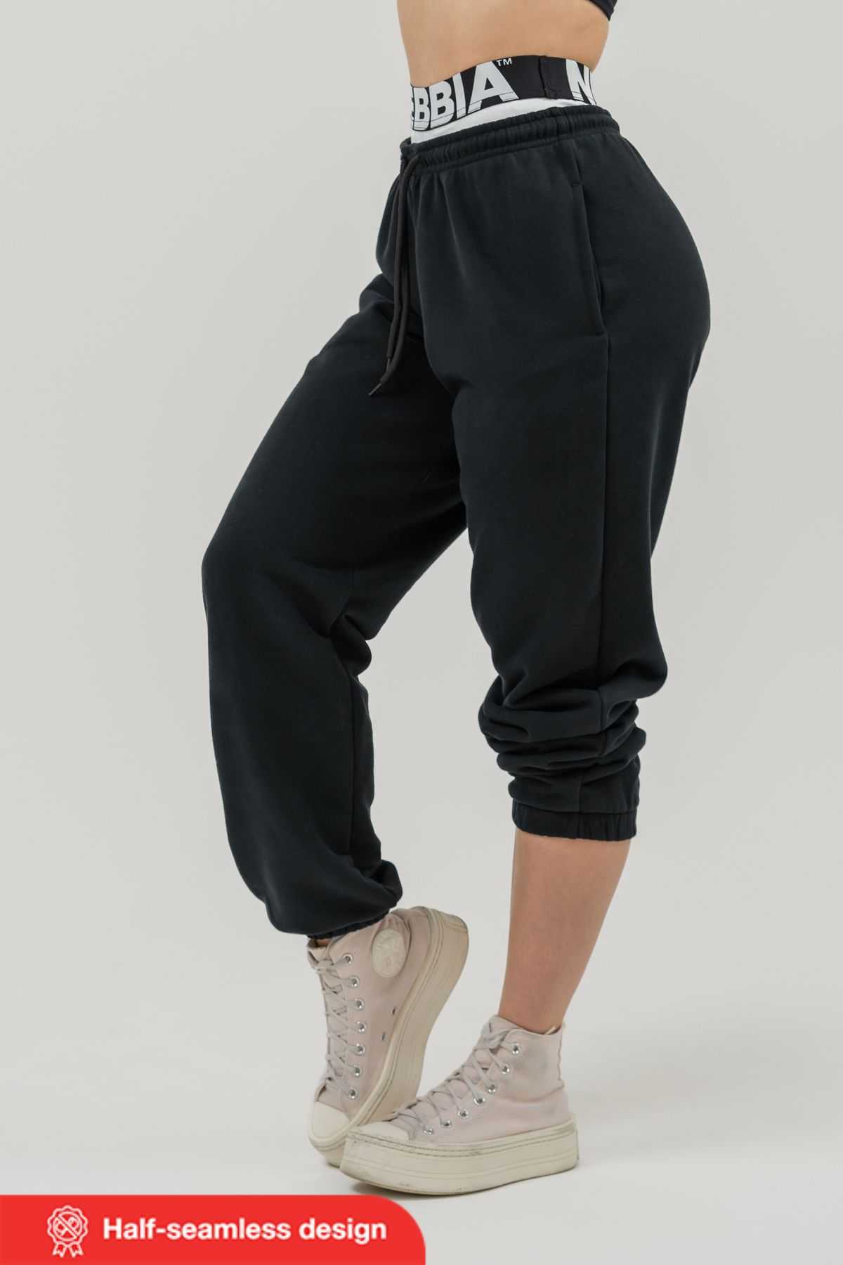 Baggy sweatpants work perfectly for warm-ups and the first set! But they also work at home. In the city. While shopping for fit snacks. In lectures. On walks. Simply everywhere. Soft cotton with anti-pilling treatment and a polyester blend that gives it durability and prevents shrinking is the best material you can imagine for your favorite sweatpants. Moreover, thanks to our iconic NEBBIA rubber in the waistband (with small silicone N's on the inner side), the sweatpants stay up + you can adjust them with a classic drawstring. And the cuffs at the bottom? Simply roll up the sweatpants above the ankle or even halfway up the calves. However you like it. However you prefer it. And enjoy your gym fit 24/7!