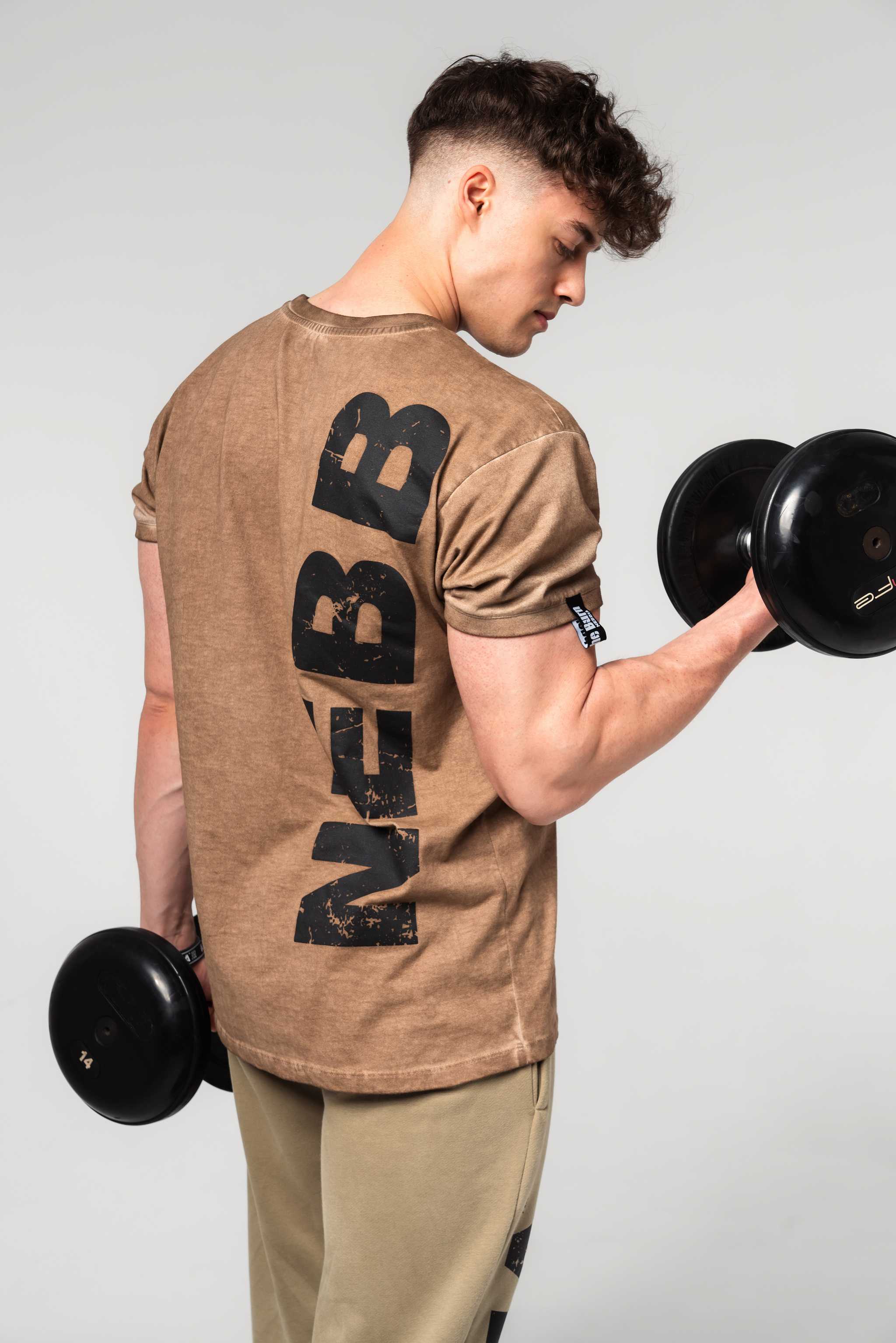 The oversized T-shirt with a dropped shoulder effect accentuates the width of your chest and shoulders. Enjoy the trendy washed design that brings the energy of the '90s gym era.