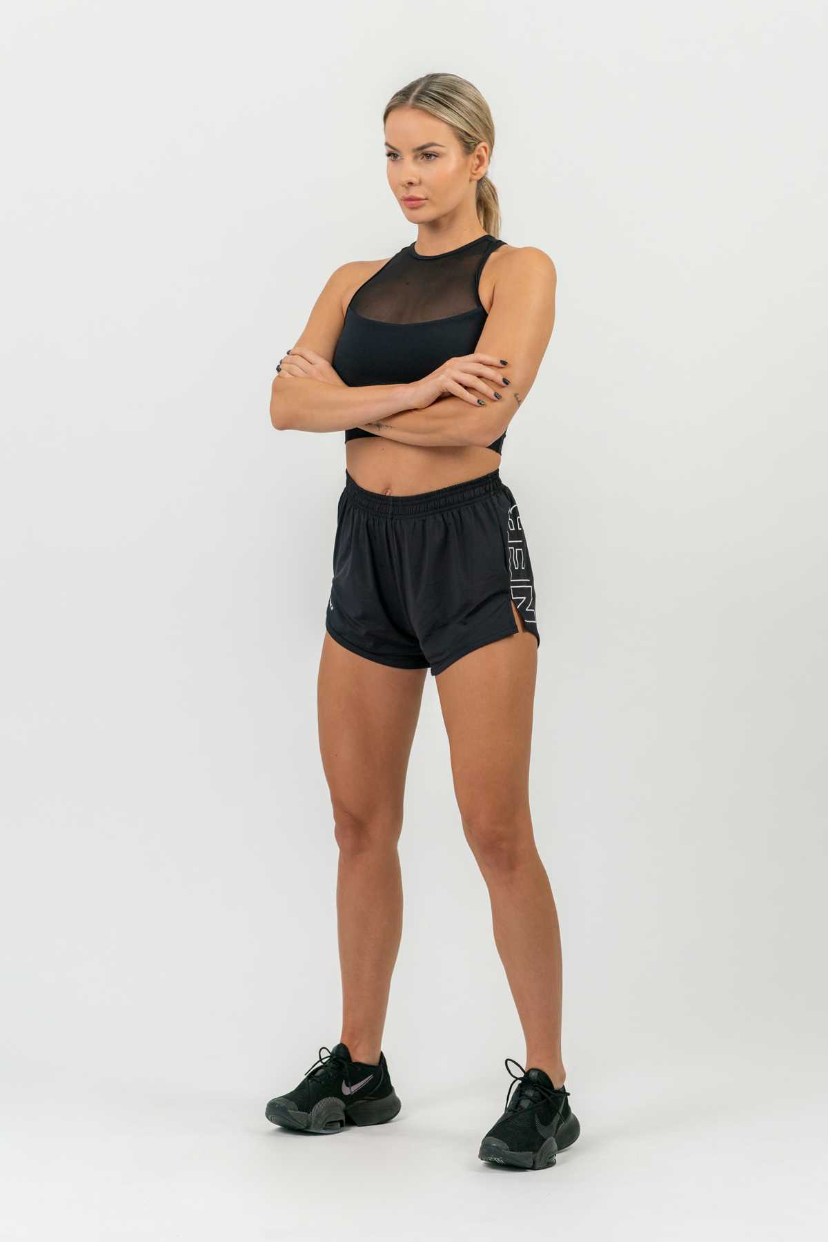 Loose fit, U-shaped hips with slits – all this is a trendy comeback of retro running shorts that fit perfectly, visually lengthen the legs and shape a beautiful figure. The only thing missing to top effect was the arch stitching on the butt, and so here it is. They don’t fall down because they have a sewn-in elastic waistband, but also drawstrings for tightening so you can adjust them to your needs. These shorts simply belong in your sports gear. Because they’ll make you feel great. Because you’ll appreciate them for running and other cardio workouts. And when it’s cold outside? Try them on over leggings and you will love this combination!