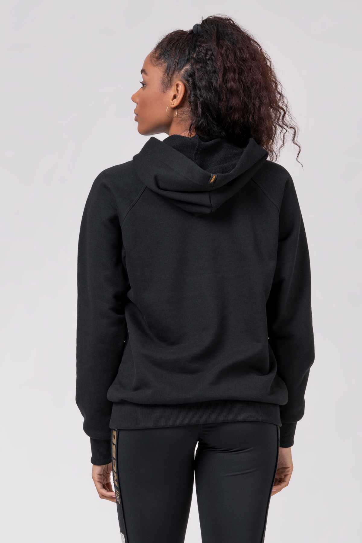 Coloured in luxurious gold and black, this dazzling piece will make you feel every movement in the gym more intensively than ever before. The hoodie is designed with an intriguing front detail in the form of a logo overlay and a unique NEBBIA logo print to always remind you that you are a part of our fitness community, our #NEBBIAfamily. The material is very comfortable, soft, and pleasant to touch, and thanks to its technical properties, it’s suitable for all kinds of physical activities and an intense rest day. :)